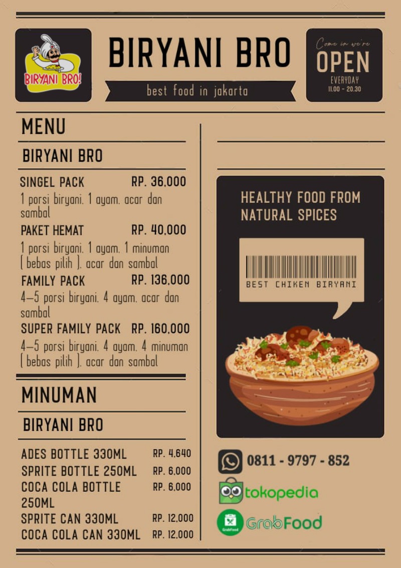 Welcome to BIRYANI BRO, a hidden gem nestled in the heart of Jakarta! This nasi restaurant offers an authentic experience that fans of biriyani simply cannot resist. Located at Jl. Panglima Polim IX No.17, Melawai, BIRYANI BRO has earned rave reviews from patrons like Biswajit Rout and Ibrahim Conway, who praise its delicious, pocket-friendly menu. Each plate is a consistent celebration of flavor; the chef prides himself on using all-natural ingredients, ensuring that the spicy heat is perfectly balanced without the harshness of MSG. Customers rave about the freshly made chicken biryani, particularly recommended for lunch. With a focus on quality and authenticity, BIRYANI BRO stands out in Jakarta’s bustling food scene. The welcoming atmosphere and friendly service further enhance your dining experience, making it a must-try destination for biriyani lovers!